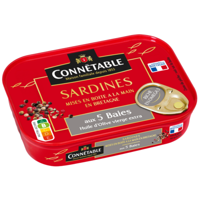 Cooked in olive oil and 5 berries, these sardines are prepared in Douarnenez. With a slightly spicy taste, they are a real treat for gourmets